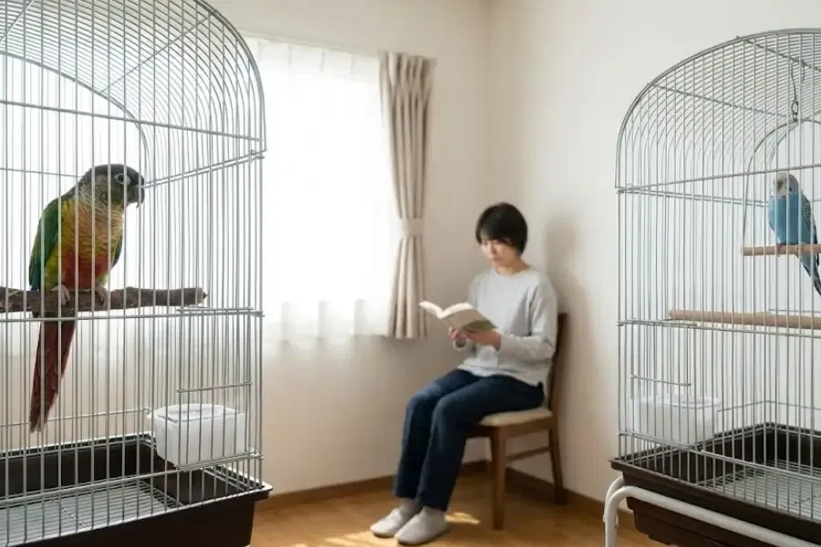 – Separate Room: The new bird must be housed in a separate cage in a different room, ideally one where they cannot see or touch existing birds. The physical separation minimizes disease transmission.