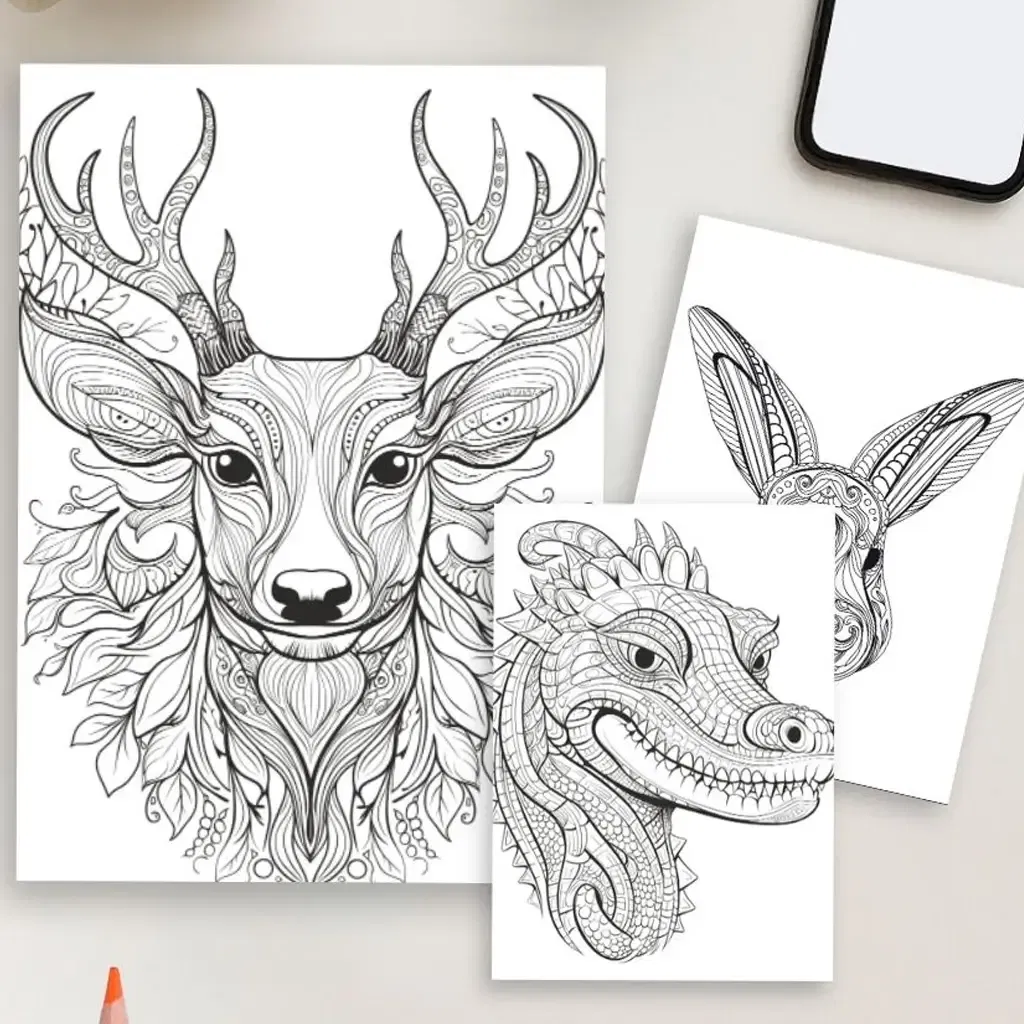 This unique collection features 54 animals shaped or filled with mandala patterns. Great for detailed coloring and mental relaxation.